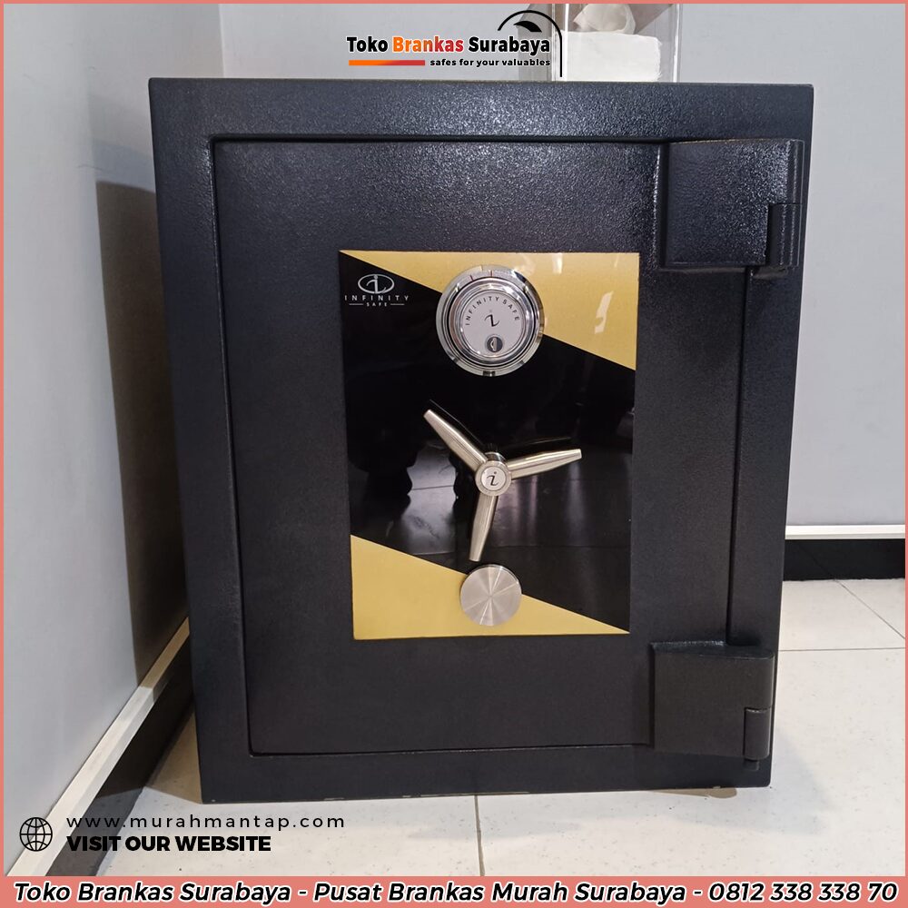 Salah satu pilihan yang banyak digunakan adalah brankas Infinity dengan desain kokoh dan sistem keamanan yang kuat, seperti yang terlihat pada gambar di atas.